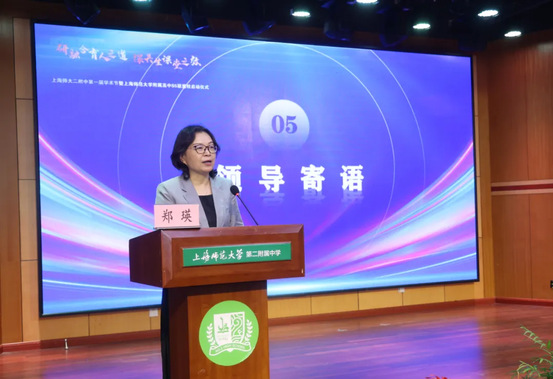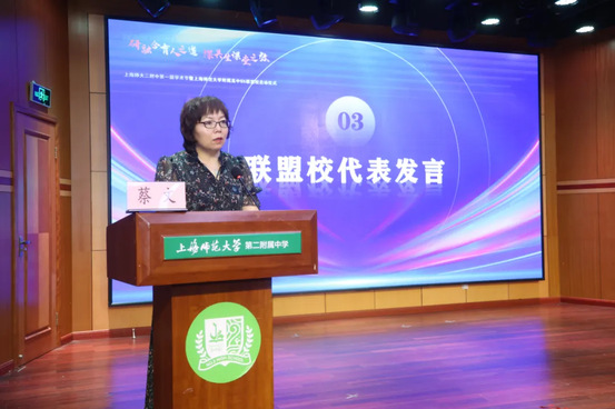 蔡文作为联盟校代表进行了发言,她对上海师大、金山教育局以及各界专家学者对二附中发展的鼎力支持与悉心指导表示感谢。她表示,上海师大附属高中S5联盟有助于真正实现学校的资源共享、成果共担、特色共创,二附中将以尽心履职的敬业态度,为联盟发展添砖加瓦,共筑教育辉煌。
