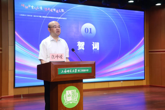 为借助特色普通高中建设项目这一平台继续深化附属学校办学内涵,助推学校高质量发展,7月4日, 附属高中S5联盟校启动仪式在 第二附属中学圆满举办。 副校长张峥嵘、金山区教育局局长郑瑛、 教务处、 处长王健、金山区教育局副局长孙方波、 副处长郭长江、 教育学院副教授李重、生命与环境科学学院副教授李慧、金山区教育学院教科研室主任高瑛、 附属高中S5联盟校校长( 第二附属中学校长蔡文、 附属宝山罗店中学校长严卫东, 附属外国语中学校长李凯、 附属嘉定高级中学校长郭长江, 附属虹口中学校长李鹏)、 湾区教育集团校教师代表等共同出席本次活动,启动仪式由 副处长李晓芳主持。