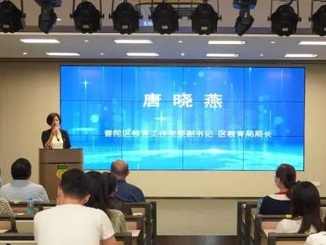普陀区教育工作党委副书记、教育局局长唐晓燕充分肯定了《高阶思维能力评价档案袋》项目立意很深,既抓住了教育评价这个关键词,又抓住了教学改革的关键点,还符合数字教育信息化的新要求。她对上二实验的校长和老师们提出了期望,二实验是一所由高校助力筹建的高起点规划的学校,希望学校有一个高品质的提升之后形成经验,在区域内做高质量的辐射,使普陀教育未来更加欣欣向荣。