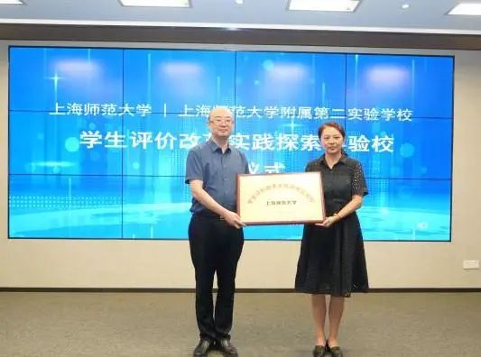 最后, 授予二实验“ 学生评价改革实践探索实验校”称号。 附属第二实验学校党支部书记、校长方蕾,科大讯飞(上海)股份有限公司副总经理刘宜中进行了签约,未来将进一步加强校企合作。