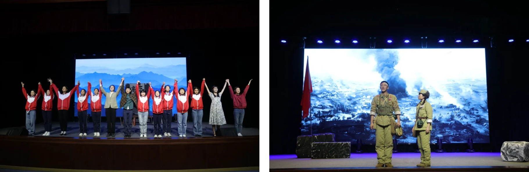 启动仪式上,上海师大学生们为上师闵分学生表演了《英雄儿女》《我本是高山》两部短剧。《英雄儿女》以抗美援朝为背景,讲述了一段关于英雄、家庭与牺牲的故事;《我本是高山》则根据张桂梅校长的真实事迹改编,讲述了她带领华坪女子高级中学的女孩们勇敢逐梦的励志故事。
