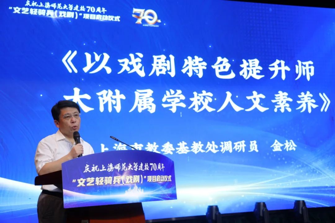 戏剧是语言是艺术,是生活的缩影,以舞台为画布,演员为笔触,绘声绘色地勾勒出多彩的世界。911日, 建校70周年“文艺轻骑兵(戏剧)”项目启动仪式在 附属中学闵行分校隆重举行。上海市教育委员会 调研员金松, 教务处处长、 处长王健, 影视传媒学院党委书记杨康贤, 副处长郭长江,闵行区教育局副局长王维刚,上海教育报刊总社副社长赵玉平,上海市教师教育学院(上海市教育委员会教学研究室)中学音乐、艺术教研员、特级教师钱熹瑗,等领导嘉宾出席活动。 影视传媒学院的学生们专门排练了9幕剧,与 附校学生一同体验戏剧的魅力。