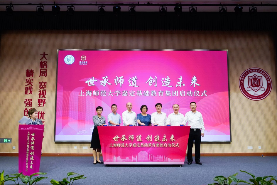 启动仪式上,袁雯、张峥嵘、王浩、田晓余、祝郁、李超、胡建会等领导共同发布了 嘉定基础教育集团LOGO。