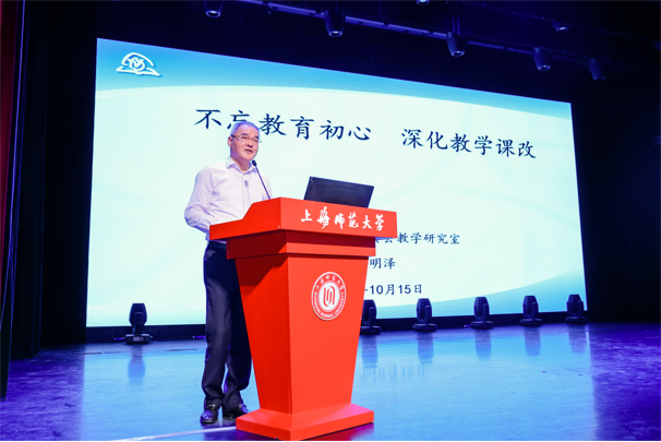 来自上海师大附属学校的三位特级正高级校长:上海市实验学校校长徐红、 附属嘉善实验学校校长鲍志慧、 附属卢湾实验小学虞怡玲分别围绕“双向融通、协同共进”作主题交流发言。上海市教委教研室党总支书记纪明泽、科大讯飞股份有限公司副总裁徐甲甲作主题报告。