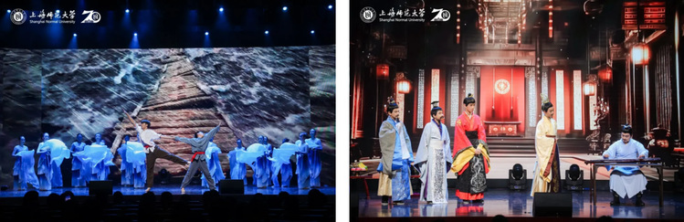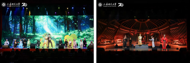 会后,由 、 影视传媒学院主办的 大中小一体化戏剧教育成果展示活动隆重举行。来自 附属中学闵行分校、 第三附属实验学校、 附属金山前京中学、 附属宝山经纬实验学校以及 附属第五嘉定实验学校的师生们奉献出精彩的演绎。此次演出活动将语文教材中的内容搬到舞台上,《苏武牧羊》《家园》《桥》《高山流水》和《归途》等剧目的演出展现了 在中小学戏剧教育方面的创新实践和丰硕成果,为与会者带来了一场视觉和心灵的盛宴。