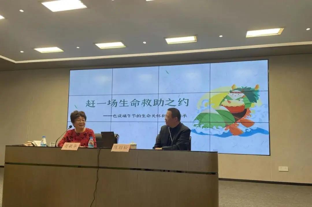 讲座以韩国申遗端午节为切入口,细细道来端午节的起源和意义、禁忌、节俗。接着,又以中日两国动漫代表作品与传统文化的融合为具体例子,对比了中日传统文化中龙王信仰的差异,并且结合自己在韩国江陵市参加端午祭的经历,提醒同学们:作为青年一代,我们要在放眼望世界的同时,既要增强文化包容感,也要取其精华,以更好地传承传统文化,这一重任是青年一代肩上的使命担当。