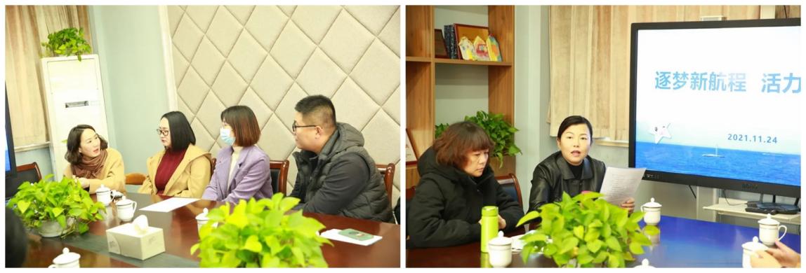 接着,丁莲娟以“逐梦新航程 活力新成长”为主题,向我校教师们介绍学校的办学理念、办学规模、师资建设、课程建设、集团化办学成效等,重点介绍了十三五期间,学校加入奉教院附小集团和城乡携手精准托管项目以来,学校借外力、炼内力,以“五大项目”的实施、“五动”机制助推教师专业成长;同时,对学校“十四五”规划的德育实践、课程教学、队伍建设、管理变革等板块的重点项目进行了介绍。