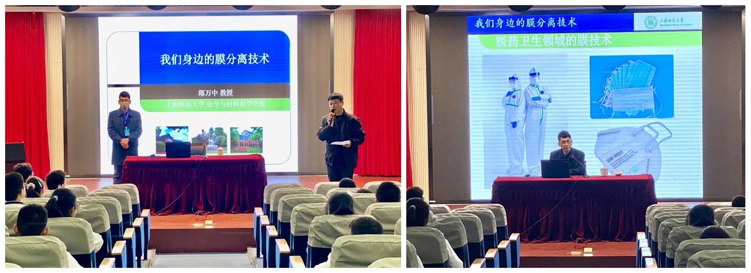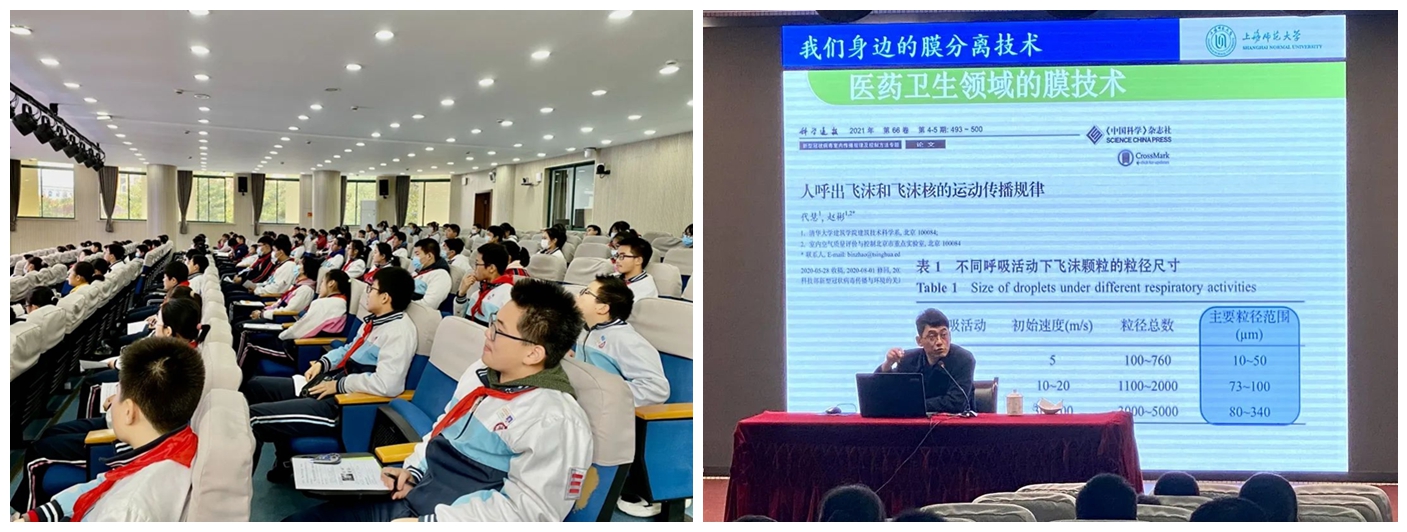 12月7日下午, 基础教育集团品牌活动“海上名师大讲堂”再一次走进高桥实验园,由 化学与材料科学学院郎万中教授给同学们带来一堂关于“我们身边的膜分离技术”讲座。本次讲座面向全体预备至初二年级学生。在前期讲座预告宣传后,同学们踊跃报名参加。120位同学来到报告厅聆听本次科普讲座,其余同学在班中直播观看。