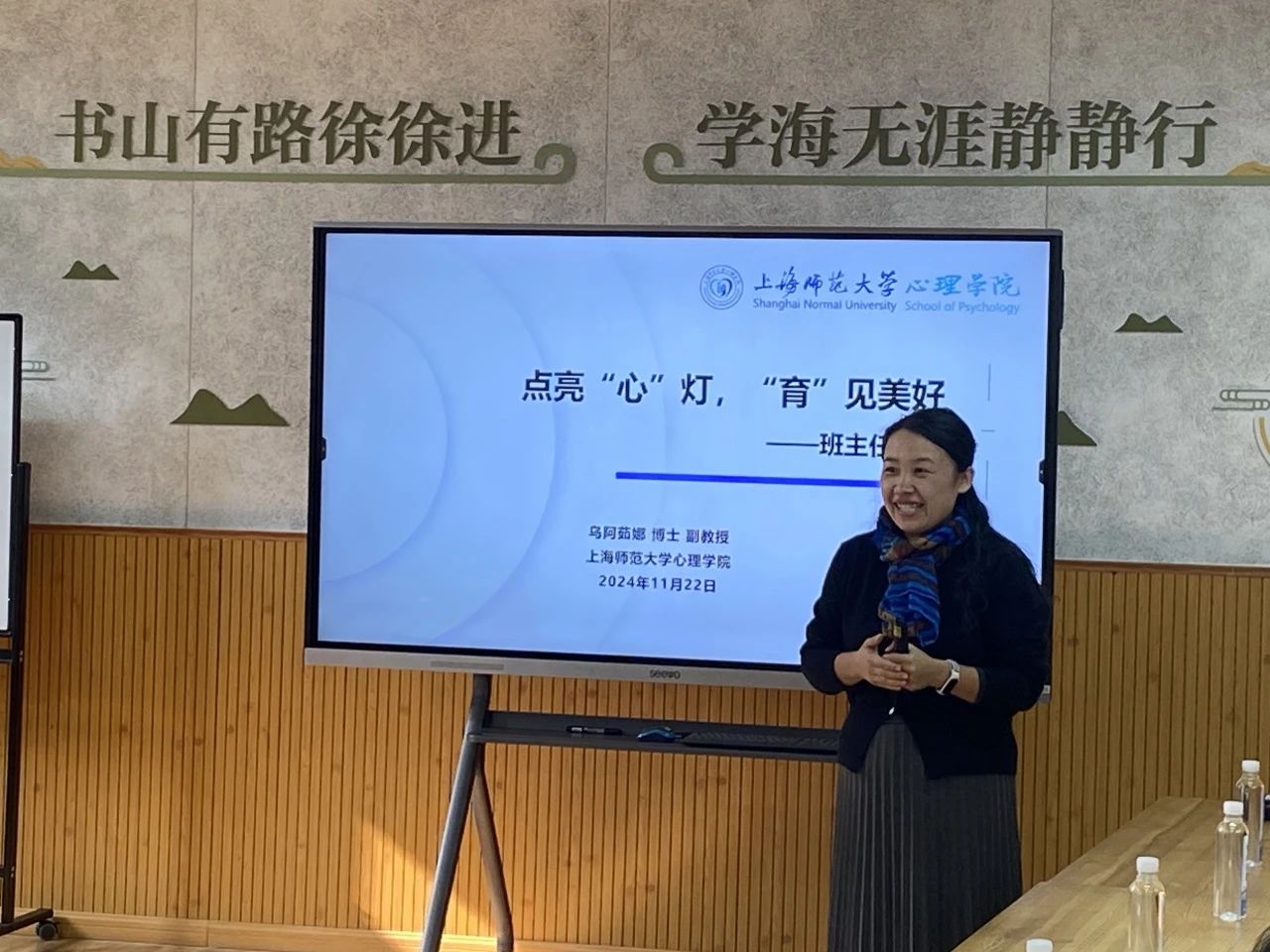 乌阿茹娜为班主任带来《点亮“心”灯,“育”见美好》讲座,解读学生心理特点,强调班级集体建设重要性,揭示教育戏剧功能。随后,乌教授带学生团队为小朋友开展《做自己情绪的小主人》心理活动,通过色彩表达情绪、心理情景剧表演等,帮助学生认识情绪、提升表达能力。