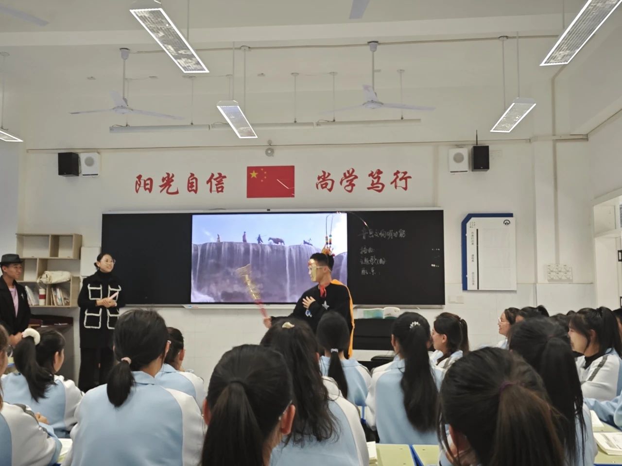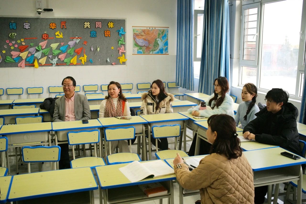在接下来的活动中, 音乐学院师生代表与附属喀什实验中学师生开展了深入的交流指导活动。附属喀什实验中学的王灿然老师执教《中国影视音乐》公开课,通过情景模拟、音乐鉴赏等方式,引导学生领略经典影视音乐的独特魅力。课后,在附属喀什实验中学音美学科组组长姑丽米热塔西老师的精心组织下,双方围绕音乐教育理念与方法展开评课交流研讨。 师生对王老师的公开课给予高度评价,并分享了专业见解,为附属喀什实验中学音乐教育发展提供了有益指导。