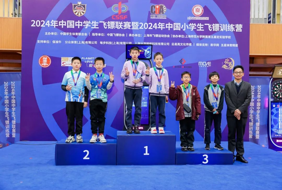 刘梓颢、朱冠羽、姚一诺、施明轩、卢轶男获小学组集体赛(501减分赛)第三名
