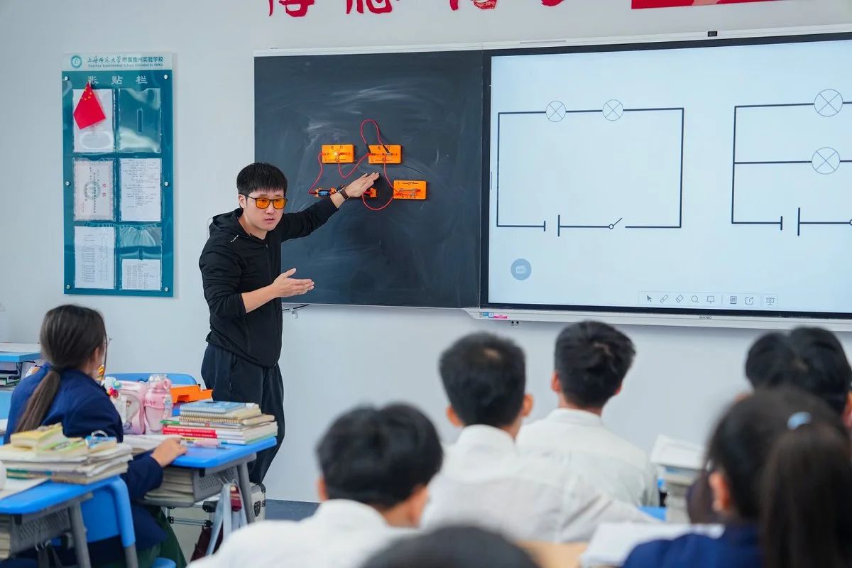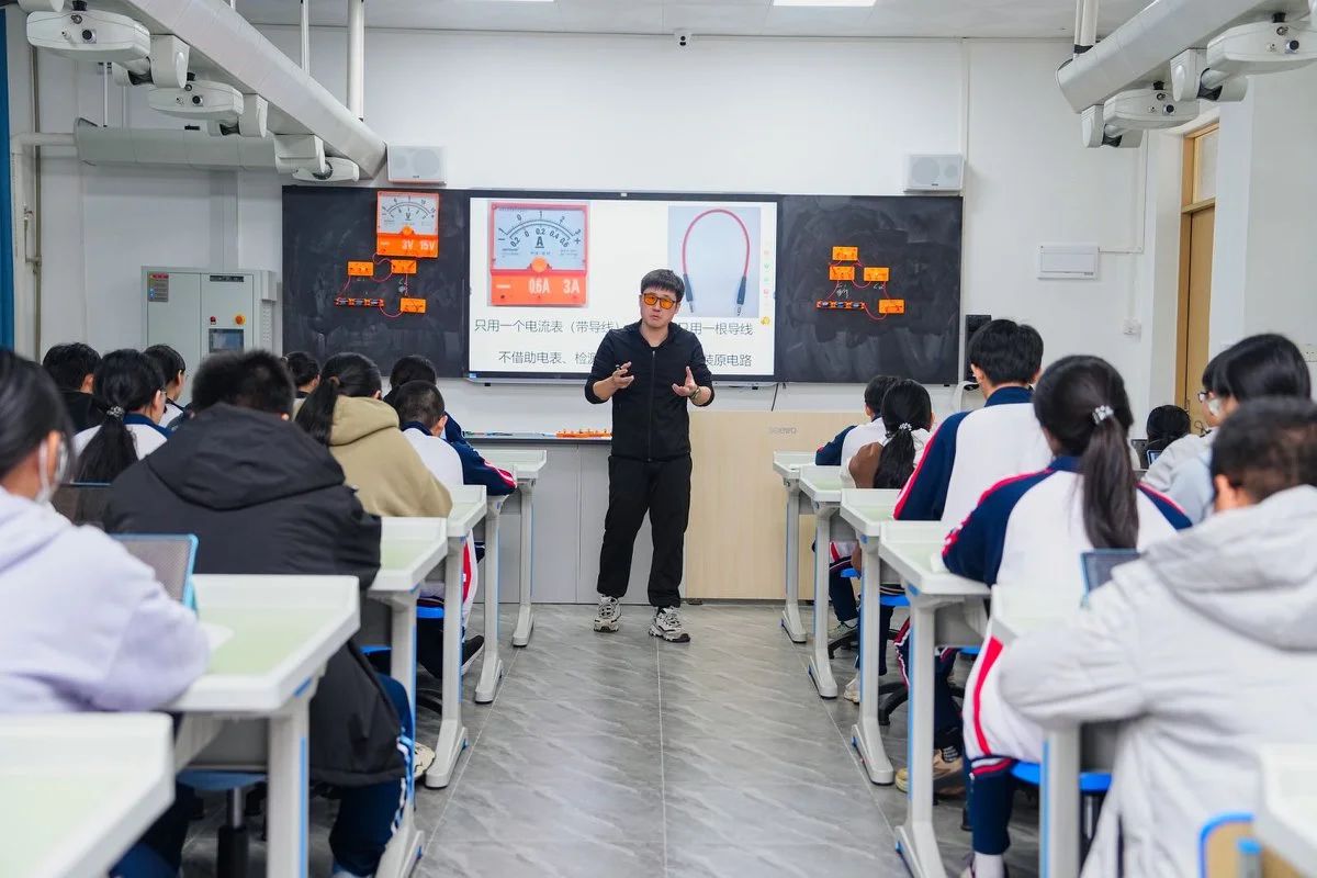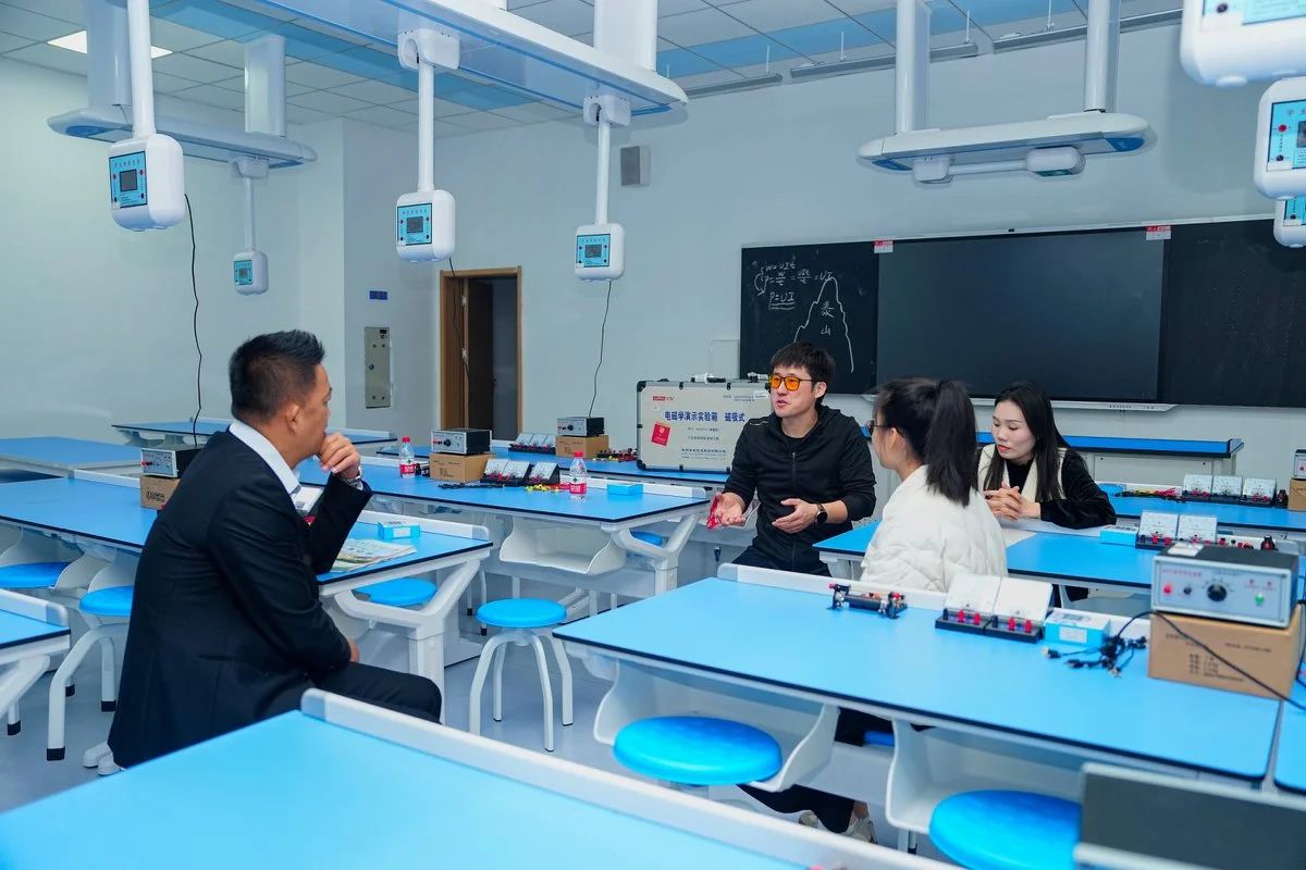 附属第二实验学校黄旭峰老师以水果电池实验导入,教学环节逻辑严谨,实践活动多样,有效锻炼学生能力,课后与附属琼海中学教师探讨教研模式,为物理学科教研注入活力。