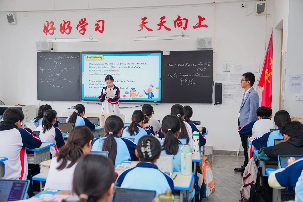 新黄浦实验学校宋志鹏老师和附属儋州实验学校胡金鑫老师共同执教英语课,胡老师以灵动的舞蹈为媒介,灵活调整教学策略,创造性使用教材,课堂氛围活跃,在欢声笑语中确保教学效果的最大化。宋老师则强调知识的实用性与灵活性应用和听说课的逐层理解。严格遵循“课标引领、教材依托、课堂实践”的转换原则,精心设计了多元化的学习任务,促进了师生之间、生生之间的丰富互动,使得整个教学过程既充实又务实。