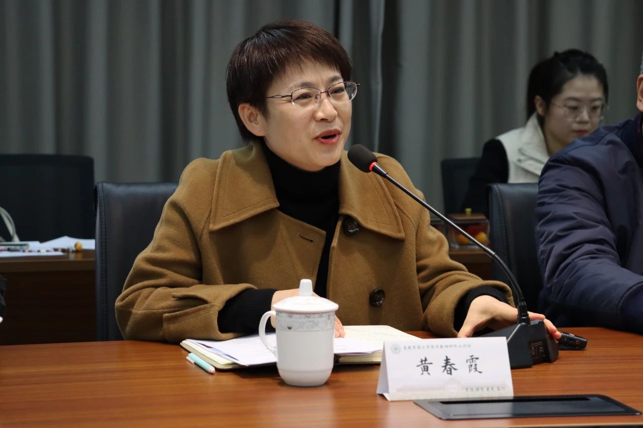 黄春霞致欢迎辞,表示非常欢迎各位专家老师莅临学校开展数学研修活动,期盼得到专家们的宝贵建议。同时她指出,学校较早地开始数字化转型教学探索,包括翻转课堂、数字教材应用和三个助手的平台实践,今天展示的教研课正是数字化转型教学探索的成果之一,希望通过本次工作坊联合研修活动,共享经验,共同促进数字化转型数学课堂教学的高质量发展。