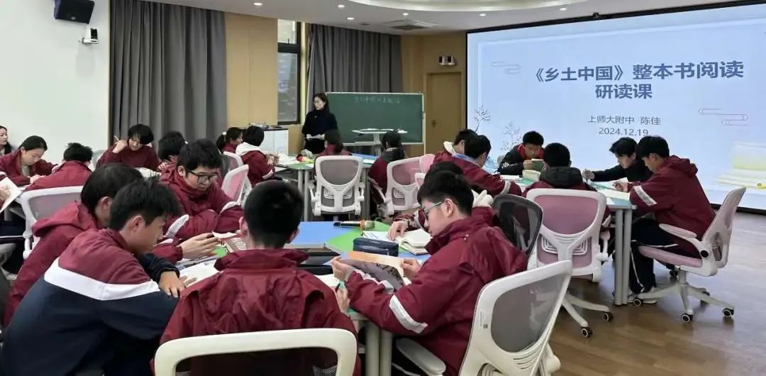 工作室聚焦语文教学中的重点、难点问题,如写作教学指导、整本书阅读指导等,组织多次专题性教学研讨。11月27日, 附属嘉定高级中学马卉嘉老师执教《说理立其诚——选必下第三单元写作任务指导》;12月3日,工作室主持人余党绪老师以《观念的对话与竞争——高考“断言类”思辨作文的分析》为题在上师大附中宝山分校上了一堂精彩的示范课;12月19日, 附属中学陈佳老师执教《<乡土中国>整本书阅读研读课》。