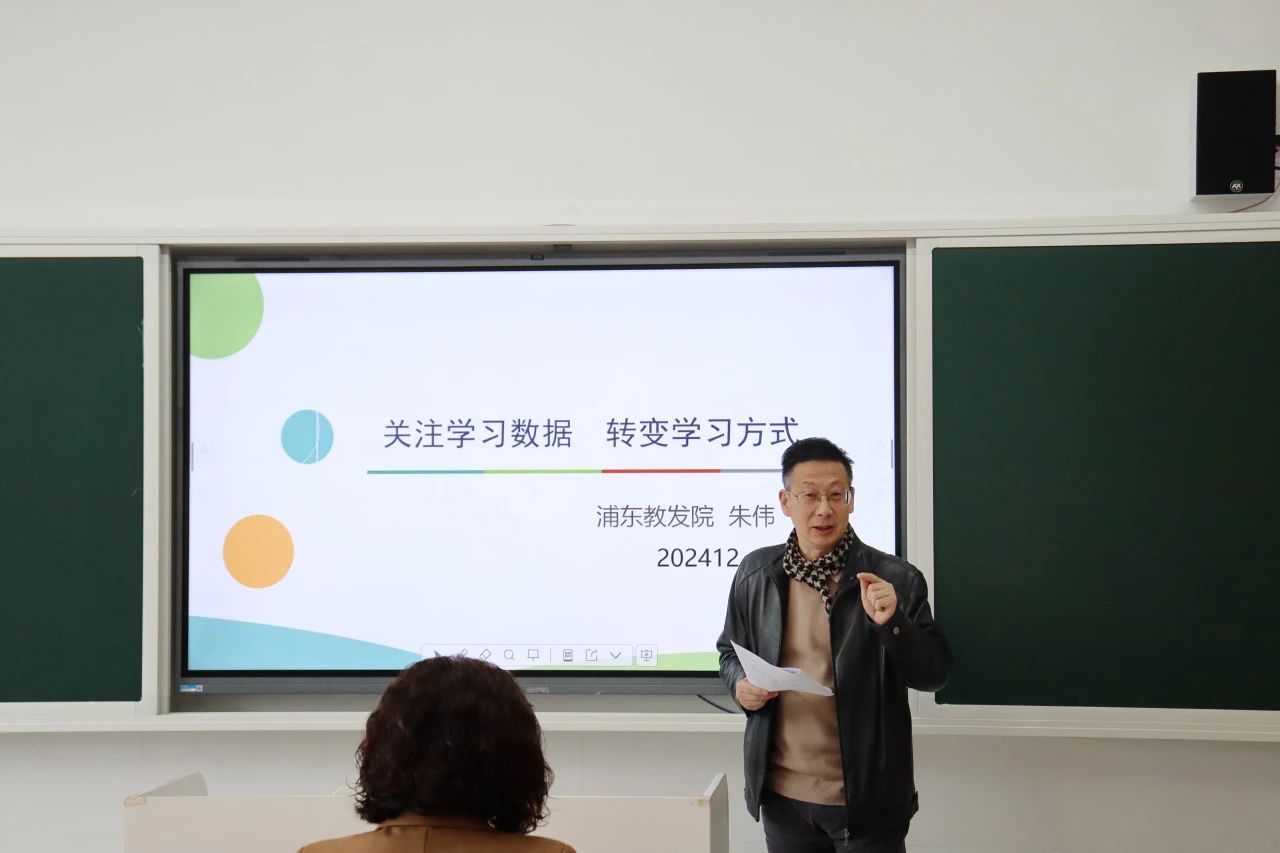 朱伟老师为学员带来了《关注学习数据 转变学习方式》的主题讲座。他着重强调教师要以学生为中心,打造趣味课堂,推动学生动态发展,并结合该课,讲解运用 “三个助手” 平台精准分析学情,助教师获取数据、调整策略,让在场教师收获颇丰。