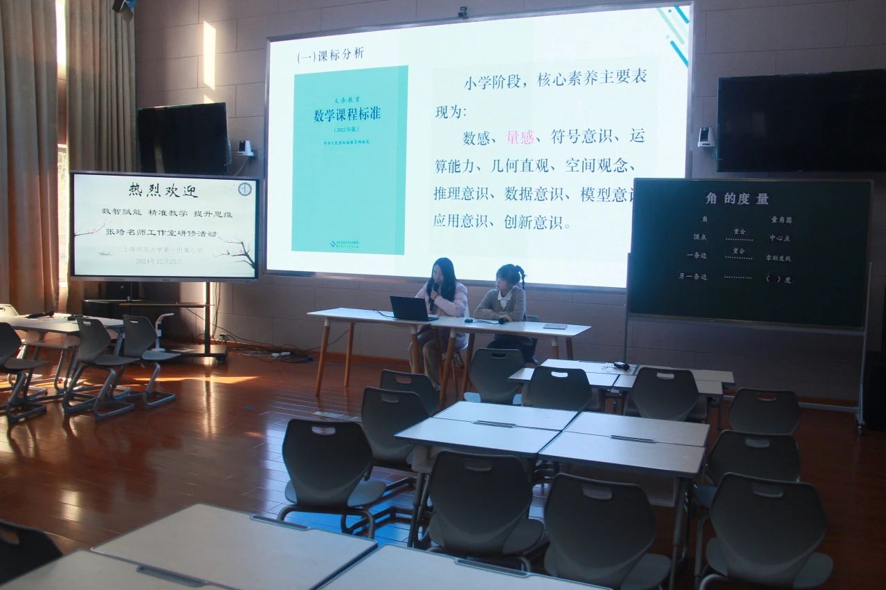 2024年12月25日,工作室研修活动在 第一附属小学举行。由 第一附属小学的沈叶丽老师展示了一节四年级几何板块的“角的度量”;上师大一附小四年级数学组以《量感筑基,据析启智》为主题,深度剖析多版教材,借助点阵笔技术,实施精准教学,随后工作室成员和张琦老师进行了深入的评课。