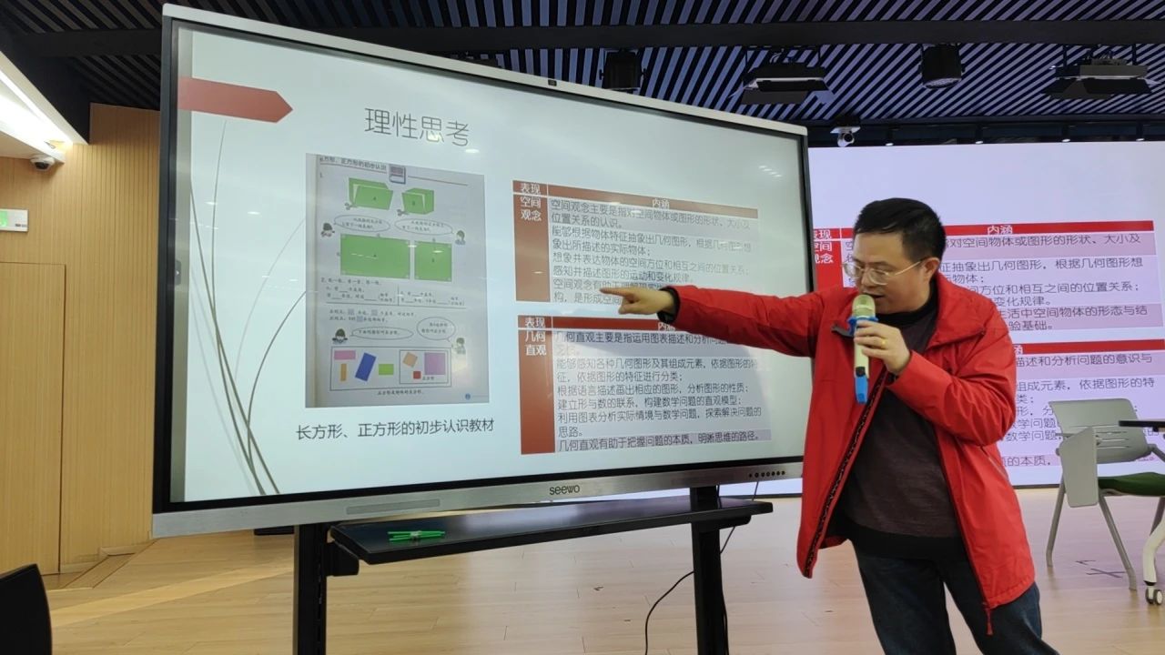 2025年1月8日,工作室研修活动在上海市实验学校举行。特邀华东师范大学教育科学学院孔企平教授以《“双新” 背景下小学数学教学改革的新动态》为题做讲座,孔教授剖析了十六届小数会课堂案例,解读“双新”——新标、新教材下课堂教学方向:以核心素养为导向,构建主题结构化课程,推进素养导向课堂改革。