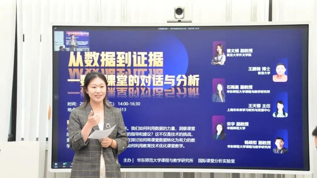 同日下午,工作室学员参加了由华东师范大学课程与教学研究所与国际课堂分析实验室联合主办的“从数据到证据——数字课堂的对话与分析”研讨会。会上,多位嘉宾分享了关于数据驱动教学、AI技术在课堂评价中的应用等前沿研究成果,并围绕课堂数据的运用、教师如何利用数据分析优化教学策略等议题展开了深入讨论。此次研讨会不仅让学员了解了教育技术领域的最新进展,也搭建了宝贵的学术交流平台。