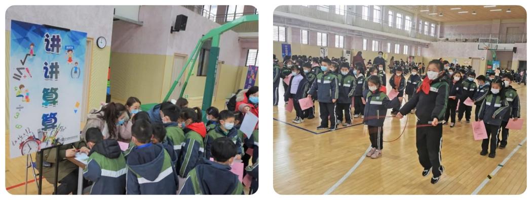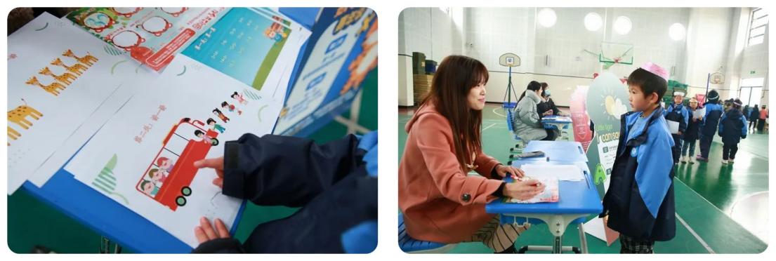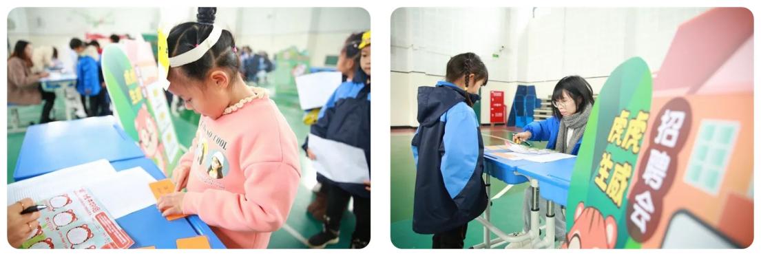附属奉贤实验小学将趣味情境与知识点相融合,将评价内容与培养能力相融合,让学生在多姿多彩的活动中展示自我,在生动鲜活的情境中体验成功的喜悦。孩子们戴着自己亲手做的虎头头饰在体育馆内连连闯关,他们在虎虎生威招聘会当起了小老师,拼读、组词不在话下;在数学王国嘉年华编故事讲算式,探寻数学奥秘;在英语世界,流畅的自我介绍,动听的老虎儿歌更是精彩。
