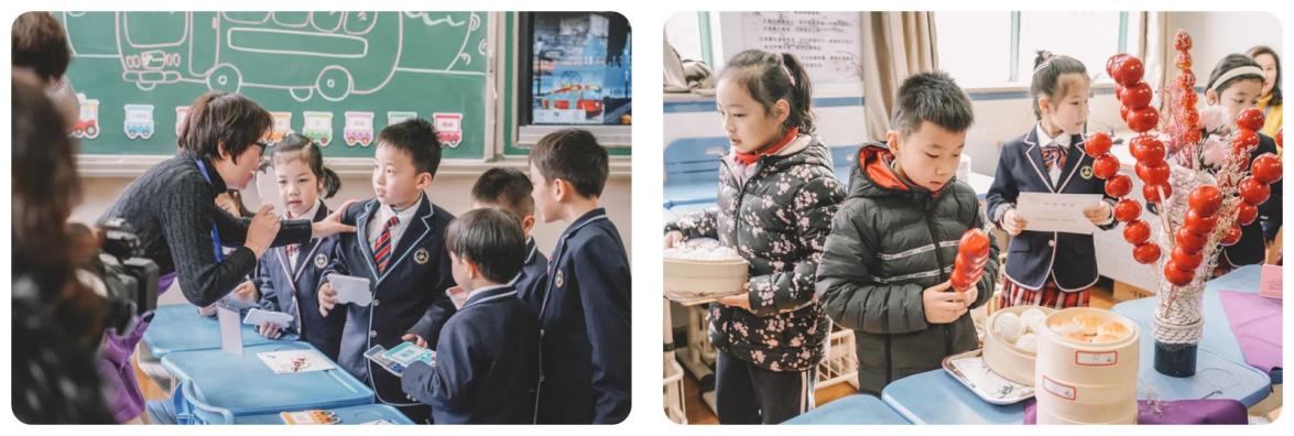 附属黄浦梅溪小学以“傲梅初开显灵动 和厚学子展梦想”为主题,举行了一年级绿色评价活动——“玩转老城厢”。他们采用了模拟情境的游戏方式,让道德与法治学科走进龙门村。语文学科则设计了“杂货小铺”和“环城电车”两个活动,目的是为了巩固一年级的语文重点——拼音。而走进“蓬莱市场”,看到了数学评价活动。生们排队拿上自己喜爱的小吃,到账台付费,算出一共需要花费的价钱,用有趣的形式对一年级上半学期计算部分进行测评,同时也让学生感受数学源于生活,用于生活。此外还有体育、美术、自然、音乐等学科的精彩活动。