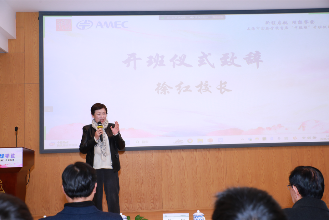 开班仪式由中微班杨珉湛主持。徐红率先致辞,对“中微班”寄予厚望,为同学们指明了努力方向,特别强调立德树人和评价体系的相关,并指出对育人方式的探索和先导是学校教育实验的根本。