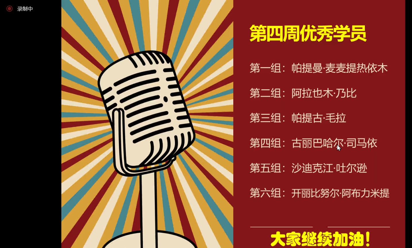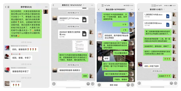 疫情之下,她的小区被封控,但她心中牵挂的仍然是31位老师的普通话学习情况。除了自己上课,每周6个小组助教的集体授课,她都会进去听;每周助教收集到的打卡录音,她也会听,并且对31位学员的情况分类记录;一周下来,还要组织助教老师反馈小组成员学习的情况,进行集体备课交流,花费了大量的心血。