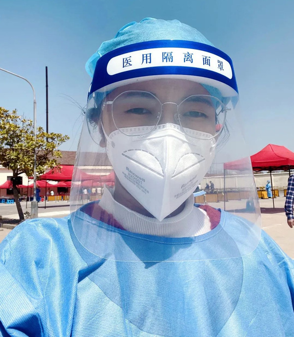 就这样,在核酸采样点站了五个多小时,直到晚上十点十五分,核酸采样终于结束,一共协助了约2100多人完成检测。在脱下防护服的一瞬间,吴佳老师感慨万分,她说:“我觉得现在的空气是如此清新,长时间闷在厚重的防护服中,感觉整个人被套在一个不透气的塑料袋中,汗流浃背。亲身体验,才感受到医务工作者人员的艰辛,深刻体会到哪有什么岁月静好,不过是有人替你负重前行。虽然,身体会感觉略微不适,但任何时候只要有需要,依然会第一时间赶到。”
