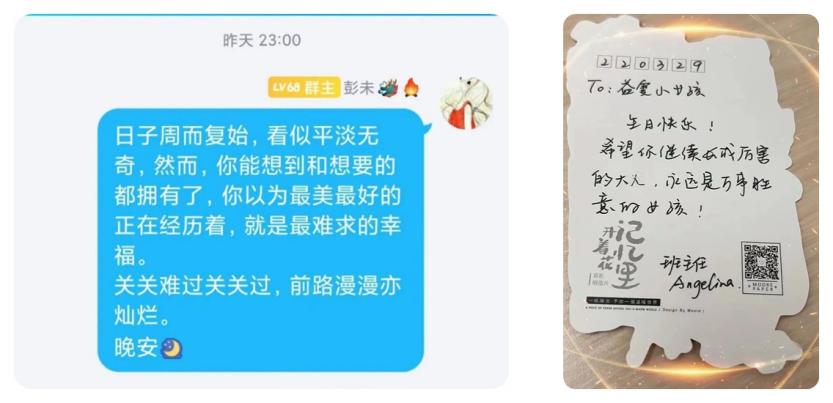 线上教学启动至今,班级导师团化身线上主播,可亲可敬,适时对话,与学生如常“见面”。课堂互动、作业评价、早读自习、语音辅导、班级管理等都是导师开展学业指导的途径。对封控隔离期内的学生,班主任协同导师团成员及时开展“思想引导、心理疏导、生活指导、成长向导”关爱行动,尽可能帮助他们打消顾虑,缓解焦虑。导师发布每晚夜读,同学绘制心情手账,师生互动留言。导师还不定期与家长联系,了解学生的身心情况,促进亲子沟通。