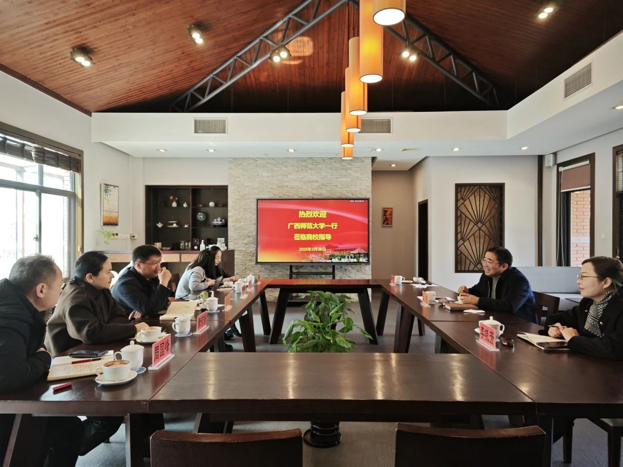 2月28日,沪桂两地基础教育交流活动热烈开展,广西师范大学研究生院院长马焕灵、基础教育管理办公室主任黄孝权、副主任黄河清等一行来访交流, 教务处处长、 处长王健、 副处长李晓芳出席交流活动。