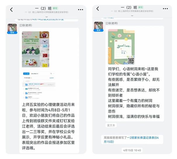 学校还开展了线上家访系列活动。线上教学前一天,班主任们根据德育要求召开了“停课不停学”的家长会,让家长们从焦虑中有了暂时的安心。学期中期又召开“疫路有你,书香伴成长”的家长会,围绕线上学习情况反馈,线上学习问题沟通与建议以及读书节活动展开,希望通过这种积极的家校沟通共同提升学生的学习。