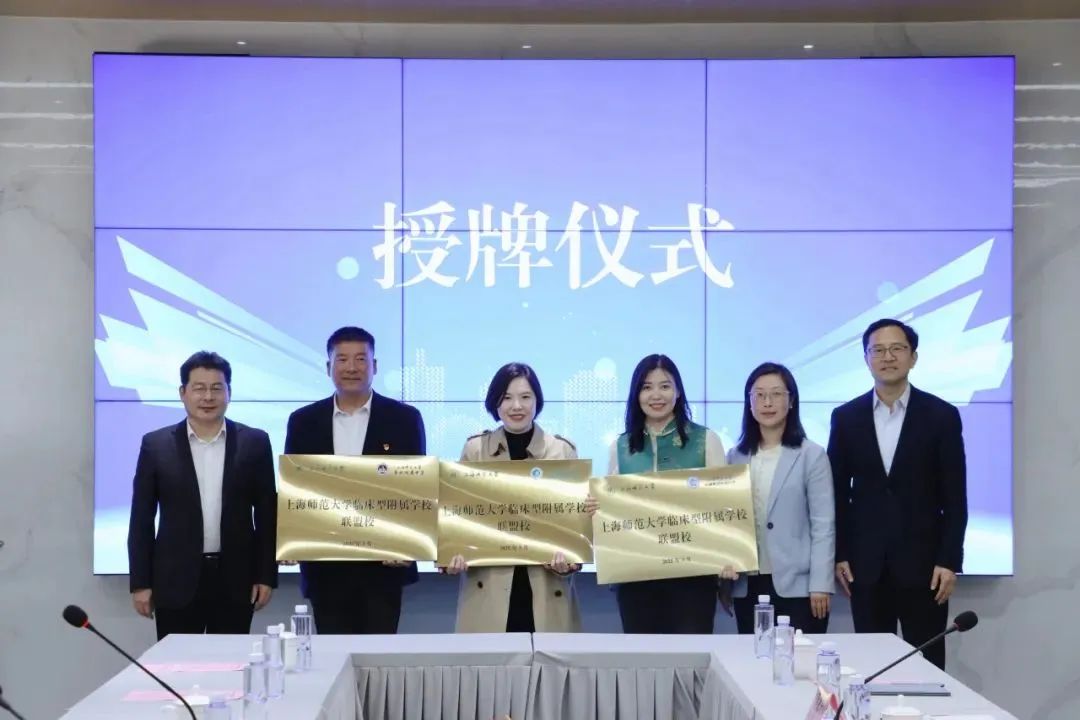 深化教育改革,创新育人模式, 临床型附属学校联盟正式启航。3月25日下午, 临床型附属学校联盟授牌仪式在 附属奉贤实验中学一楼会议室举行。奉贤区教育局副局长万国良, 处长郭长江、挂职副处长姜杉, 基础教育发展研究院科研员陆超, 附属奉贤实验中学书记、校长包蓓姹, 第四附属中学副书记、校长朱银辉, 附属奉贤实验小学书记、校长何超英, 附属奉贤实验学校(筹)书记、校长侯素英等四所联盟校的学校领导、嘉宾共同出席仪式。