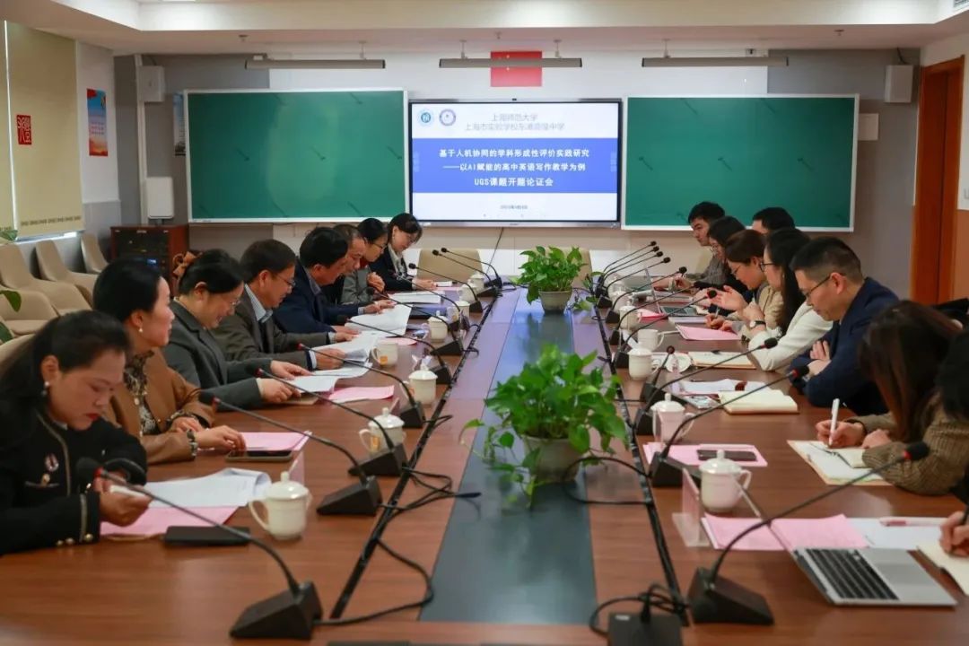4月3日,《基于人机协同的学科形成性评价实践研究——以AI赋能的高中英语写作教学为例》UGS开题论证会在上海市实验学校东滩高级中学顺利召开。 基础教育发展研究院副院长张惠康、 挂职副处长张磊、 博士生导师、上海市实验学校副校长陈兴冶、 附属中学副校长王昌国、 计算机科学与技术系林晓教授、基础教育发展研究院办公室主任周燕菊、崇明区教育学院信息技术/信息科技教研员邱云峰、崇明区教育学院高中英语教研员沈宇丹作为论证专家莅临指导。 计算机科学与技术系系主任洪璇副教授、上海市实验学校东滩高级中学校长袁万萍、英语组、综合组及科研室相关教师作为课题组成员参加会议。