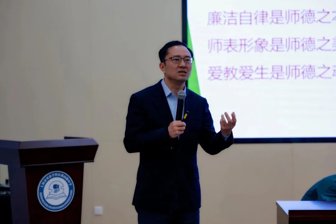 郭长江开展了题为《弘扬师德师风——在教育家精神引领下前行》的主题讲座。郭长江指出,新时代教育对教师师德师风抱有崇高期望,对教师师德师风的具体要求进一步深化。使命使然谓之“道”,良善之约谓之“德”。为了人民满意教育的迫切需要,人工智能时代的社会需要,同时应对剧场效应下群体焦虑的教育之挑战,教师应当秉持人文关怀与科技赋能相结合的理念,创新教育模式,以个性化培养和终身学习能力塑造为核心,实现教育本质回归与人的全面发展。