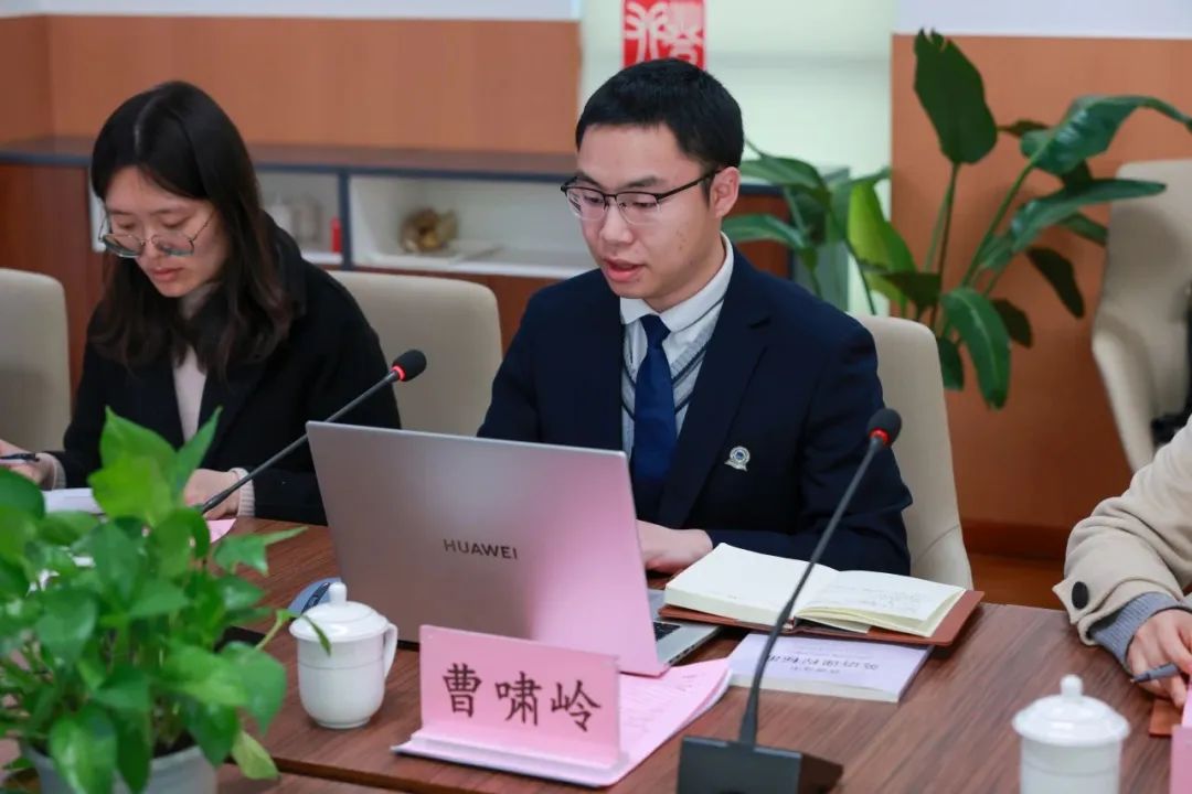 课题汇报由洪璇与上海市实验学校东滩高级中学综合组组长曹啸岭老师共同完成。曹老师从研究背景与意义、研究内容与路径、研究重难点、研究进展与计划四个方面进行了介绍。他阐明了本课题的两个研究问题:高中英语写作教学形成性评价的评价量表应如何构建?如何从人机协同的视域在高中英语写作教学中更有效地应用形成性评价?为此,课题组在认真研究英语学科核心素养的能力要求和上海高考英语作文评分标准后,提出构建多级英语写作评价量表,并将据此探索基于AI双评的高中英语写作评价模型。