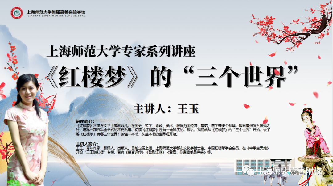 5月10日, 附属嘉善实验学校的学生们有幸相聚“云”上,聆听青年作家、中国《红楼梦》学会会员、 博士研究生王玉老师解读《红楼梦》,感受古典文学与传统文化的智慧和熏陶。