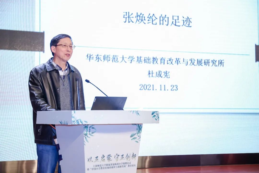 华东师范大学教育史教授、博士生导师杜成宪发言的主题是《赓续:张焕纶的足迹》。张焕纶先生是中国小学教育的最早探索者、中国教育研究的最早尝试者、中国学制蓝图的最早描绘者。张焕纶的足迹留给我们的启示是教育者有家国情怀,有教育思想注重教育的整体性、充分认识基础教育的意义、倡导均衡发展的教育。张焕纶的足迹展示的实践智慧是注重教学法的研究与应用、有张有弛的教育教学管理、重要的是迈出今天我们自己的脚步,给后人留下我们今天的足迹。