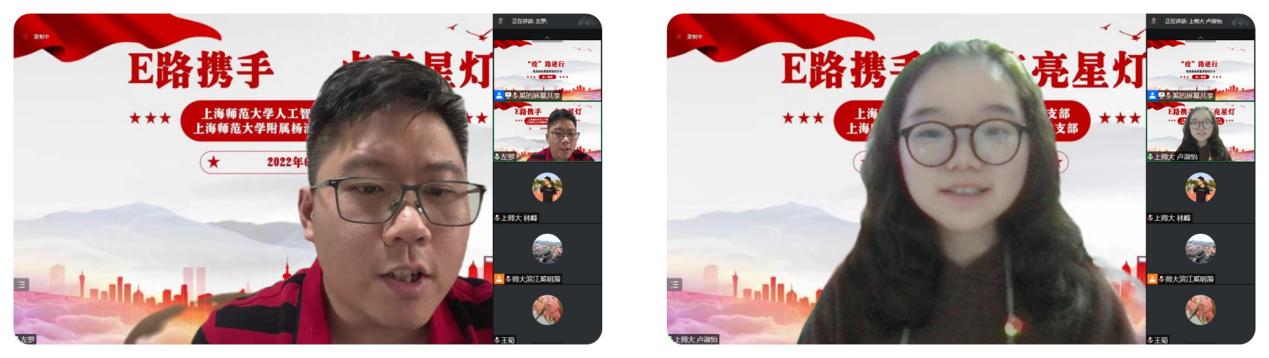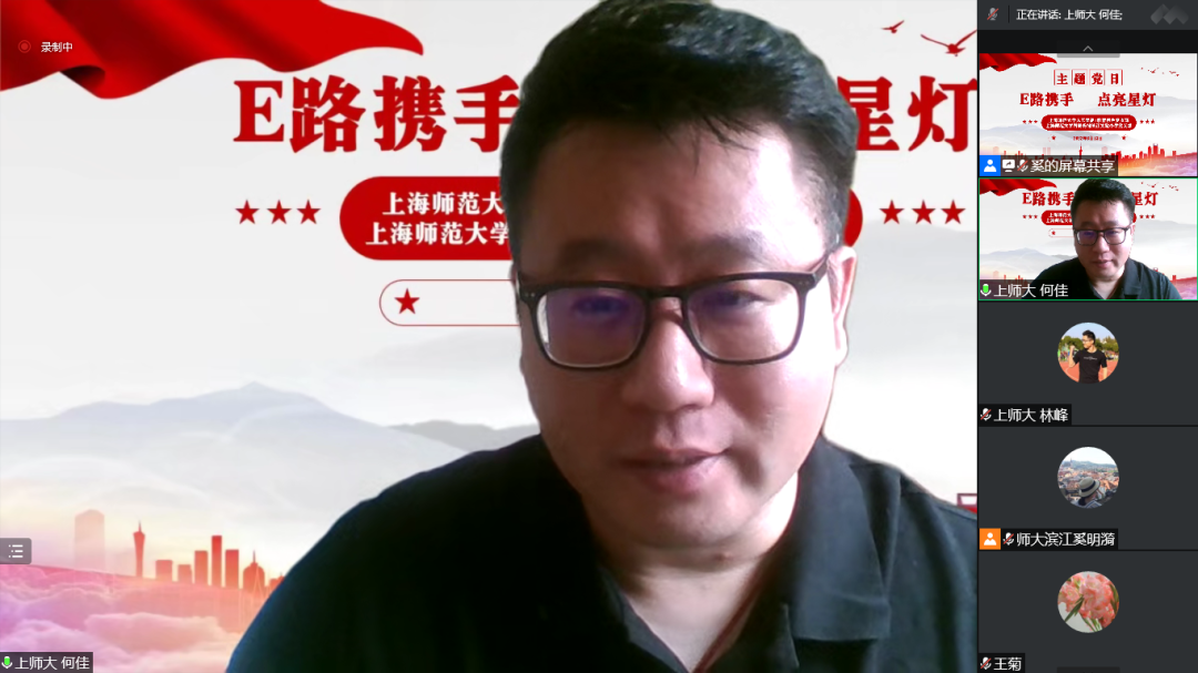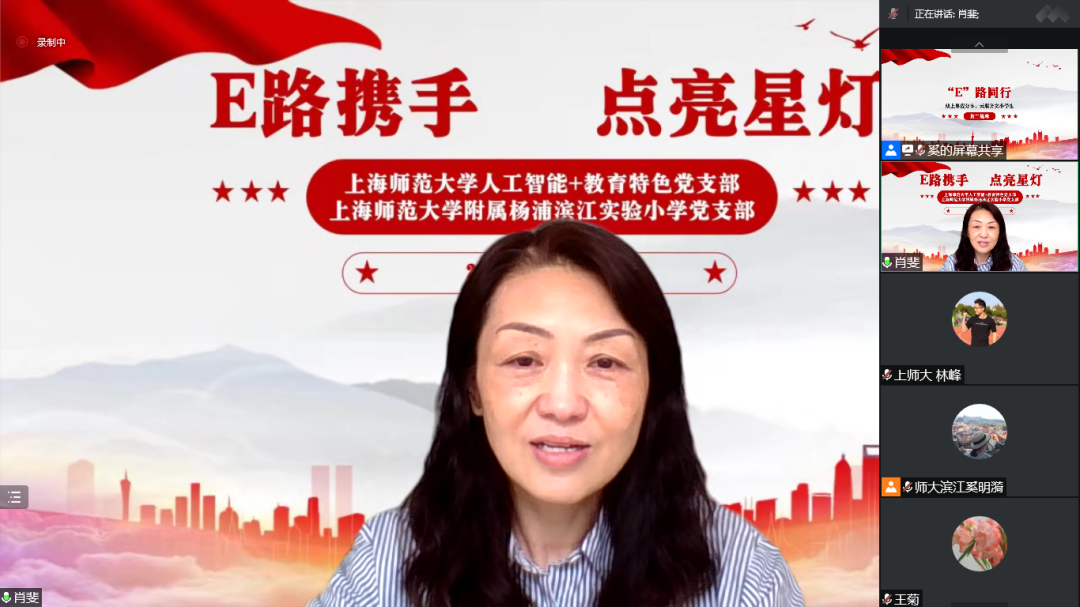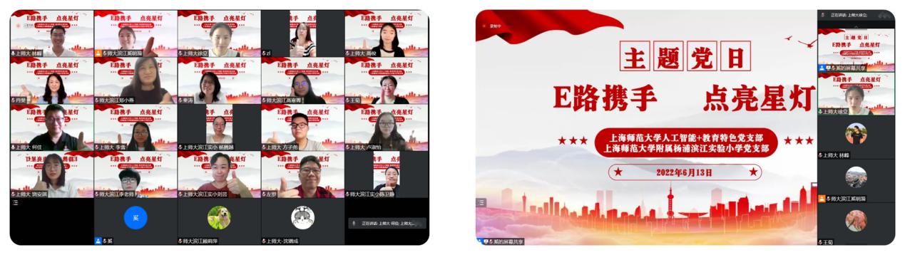 正值 杨浦滨江实验小学一周年校庆来临之际,为推进立德树人,进一步发挥党员在疫情期间先锋模范作用,6月13日下午, 人工智能+教育特色党支部与杨浦滨江实验小学党支部全体成员齐聚云端,联合开展“E路携手,点亮星灯”主题党日活动。 信息与机电工程学院党委副书记、副院长何佳, 杨浦滨江实验小学党支部书记、校长郑小燕出席并讲话,双方党支部全体党员与入党积极分子参会,活动由人工智能+教育特色党支部成员徐立同志主持。