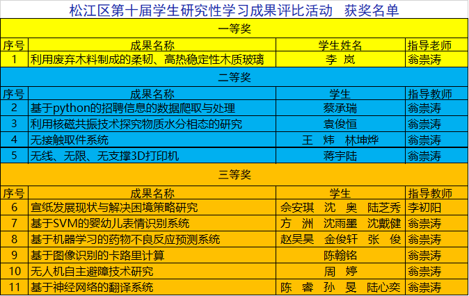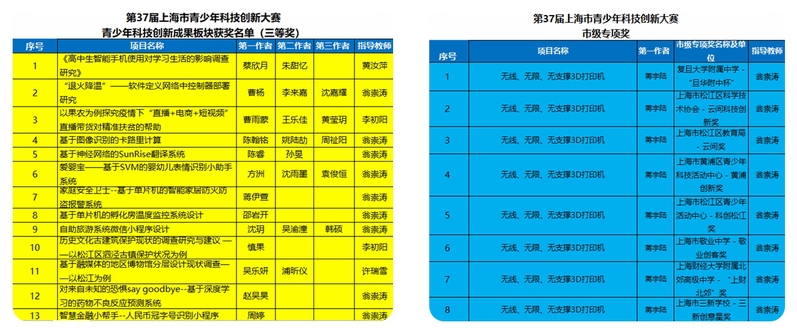 在本届大赛中,上海师大外语附中除蒋宇陆同学的课题获奖之外,还获得了8个专项奖,2个项目获得大赛一等奖, 4个项目获得大赛二等奖,13个项目获得了大赛三等奖!