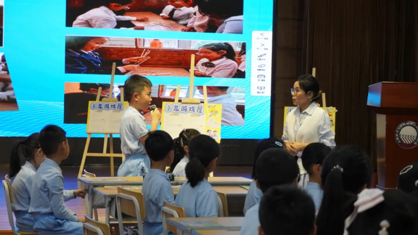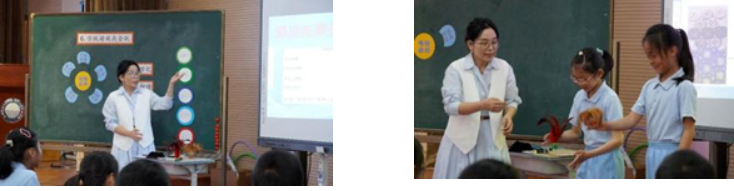 附属闵行日新实验学校杜弘老师与附属黄浦梅溪小学周芸佳老师同课异构《我们好好玩》。杜老师围绕传统游戏传承主题,课前组织学生采访祖辈,收集传统游戏故事,感受趣味;课中举办校园游戏日,组织学生体验踢毽子等游戏,体悟文化内涵;课后引导学生结合现代生活设计创新玩法,并设计方案,激发学生对传统游戏的探究热情与传承责任感。