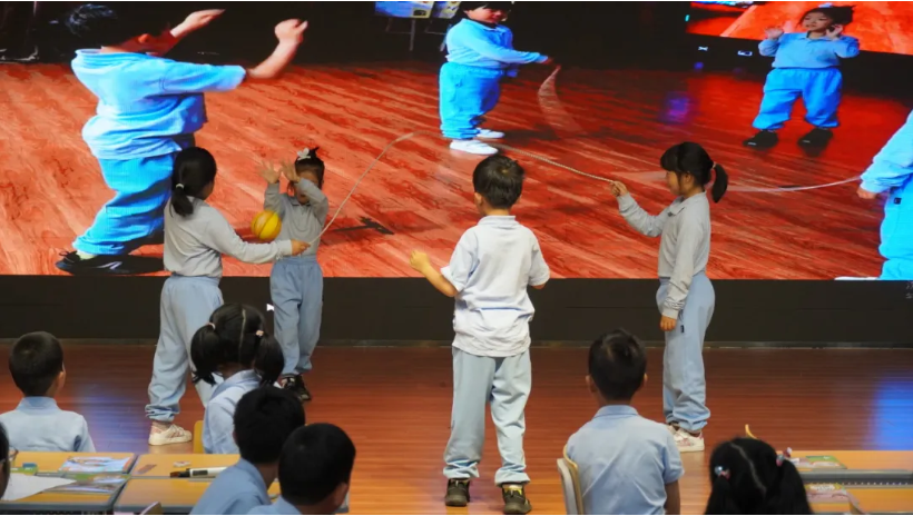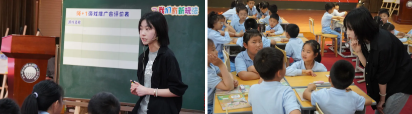 周芸佳老师执教的《我们有新玩法》,围绕“有创意地生活”理念,结合“创新、合作、规则”素养目标,开展“一绳多玩”活动。以“小梅的烦恼”情境驱动创新,设置递进环节让学生在游戏中感悟。采用“好玩度、参与度、安全度”三维评价,借助“绳+1游戏推广会”促进学生互评。通过学校特色“童谣创编”助力跨学科发展。学生创造力惊人,实现“做中学、玩中悟”。