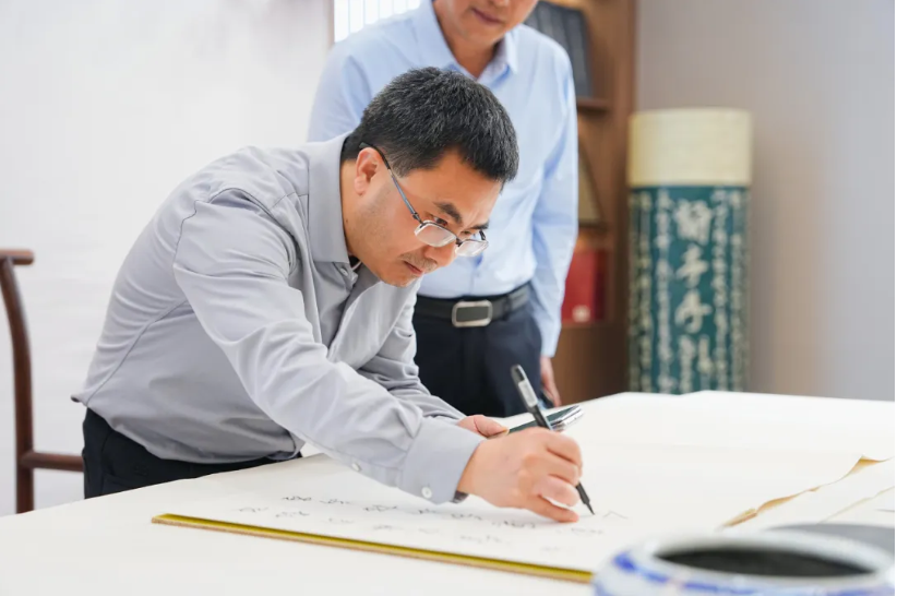 李晔对综合指导工作做了总结讲话。他对附属安阳中学先进的思想理念,清晰的目标规划,科学的实施路径、创新的教育实践和优异的办学成效给予充分肯定,对学校的大思政建设、跨学科整合和校家社协同育人实践给予指高度评价,认为附属安阳中学能够聚焦强国目标,顺应教育大势,对接基教高地、赋能优质发展,为基教集团成员校做出很好的示范。李晔还表达了加强双方合作交流的期望。他表示, 正致力于打造全球教师教育的高地,未来将为附属学校输送理论、课程和师资培养等多方面的资源,希望附属安阳中学在新领域积极探索,为基础教育发展做出更大贡献。会后,他寄语未来,欣然为附属安阳中学题词:甲骨文脉引教改,彰德创新拓新程,合作争先锋!