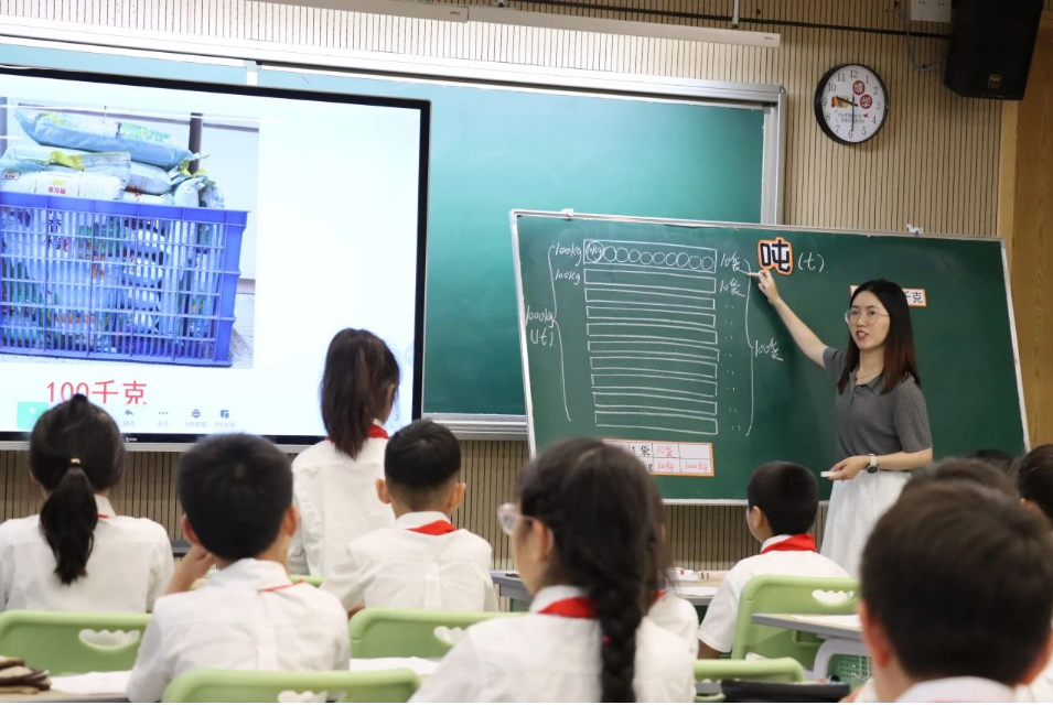 课堂教学观摩环节,上海师大附属宁波实验学校竺婕老师执教了二年级的“吨的认识”一课。本节课借助质量单位唤起学生经验,引入“吨”的概念,并通过抱大米、抱同学、拎油等体验活动强化学生对“吨”的质量感知,以多元的体验、想象和推理活动帮助孩子建立质量观念,并设置分层巩固练习培养孩子的应用意识。课堂还以视频展示生活实例,渗透爱国主义教育和社会责任意识培育。