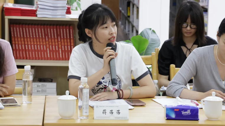 今天的两堂公开课正是研修工作坊的两位研修学员老师围绕自己研究的小课题进行的研究性教学,她们力图将课题研究成果体现在课堂教学实践中,以课题驱动助推课堂教学改进。围绕本次活动的研修主题,刘一婵老师以“在几何游戏中发展低年级小学生的模型意识”为题,畅谈了她是如何基于课题研究进行“三角形与四边形”这堂课的教学设计。她表示,对于处于具体形象思维阶段的低年级学生而言,“活动化、游戏化、生活化”的课堂设计更能激发学习兴趣,实现“做中学”,“三角形与四边形”一课中,课堂以图形分割、七巧板等游戏为载体,让学生经历“游戏实践—语言表达—总结归纳”这一完整的学习路径,进而发展模型意识。