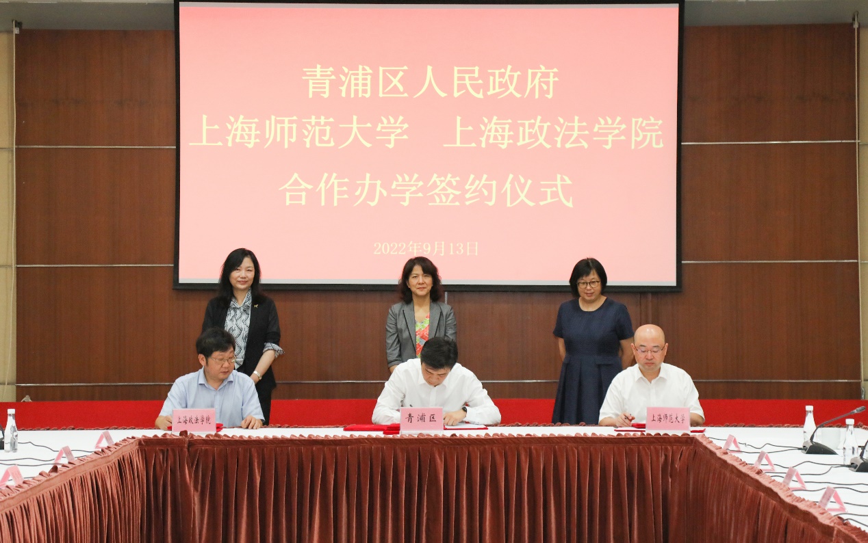9月13日上午, 与青浦区合作办学签约仪式在青浦区政府举行,这标志着 与青浦区合作进一步深化,青浦区进入青浦教育品牌全面打造新时代。青浦区委副书记、区长杨小菁, 校长袁雯出席仪式并讲话,区委副书记张权权、副区长张彦、 副校长张峥嵘及校 、学前教育学院负责人出席。