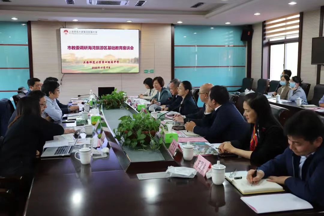 10月19日下午,上海市教委副主任杨振峰调研我校四附中、附属奉贤实验中学、附属奉贤实验小学三所附校,指导奉贤校区周边基础教育资源整体高水平规划、高标准建设、高质量办学。市教委基教处、财务处、规划处相关负责同志陪同。奉贤区副区长张娣芳及奉贤区教育局、海湾旅游区管委会主要负责同志,我校副校长张峥嵘及 、三所附校主要负责同志陪同调研。
