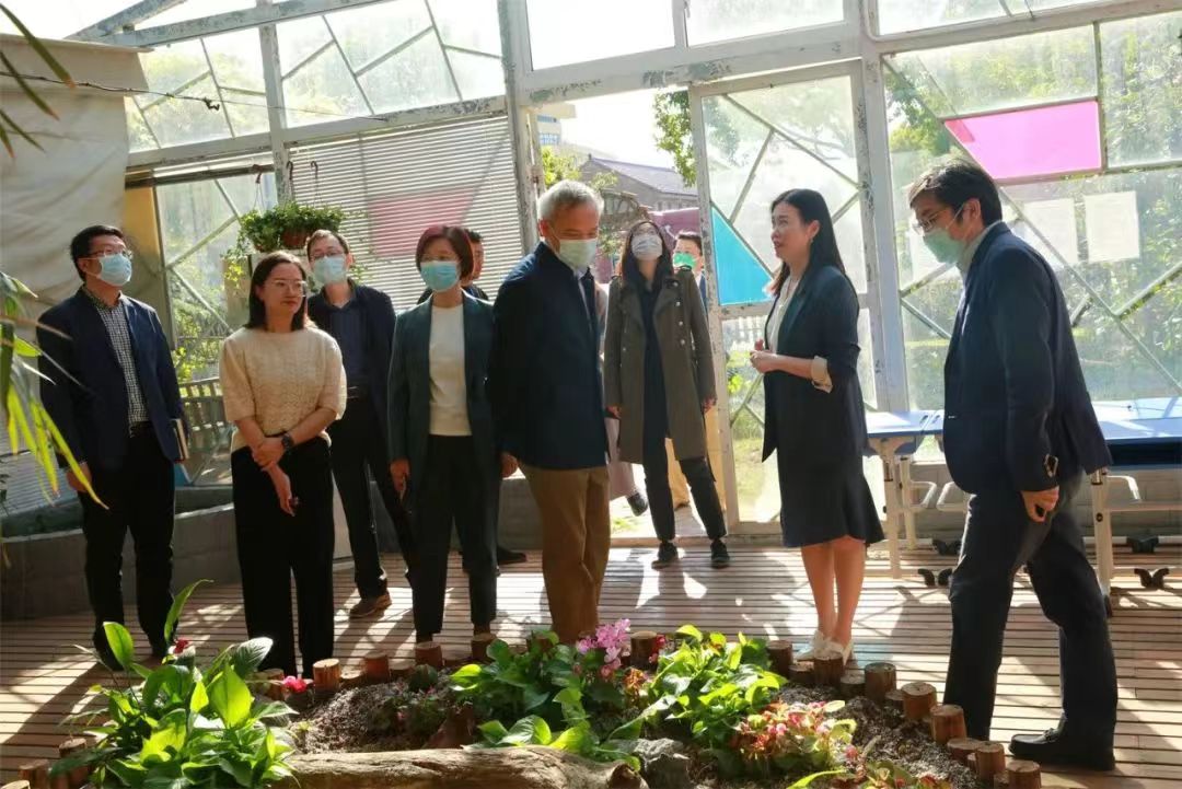 在四附中校长周秀丽的陪同下,杨振峰一行走访了教室、食堂、实验室及户外运动场地,并与同学们亲切交流,实地了解学校扩招后的办学资源情况,并听取了四附中校园建设土地调规、基建方案。随后奉贤区教育局、海湾旅游区管委会、我校基教处及教委财务处、规划处、基教处相关负责同志就利用上师大基教集团校优势将四附中整体朝着“上海市实验性示范性高中”方向品牌重塑方案进行了充分的讨论。