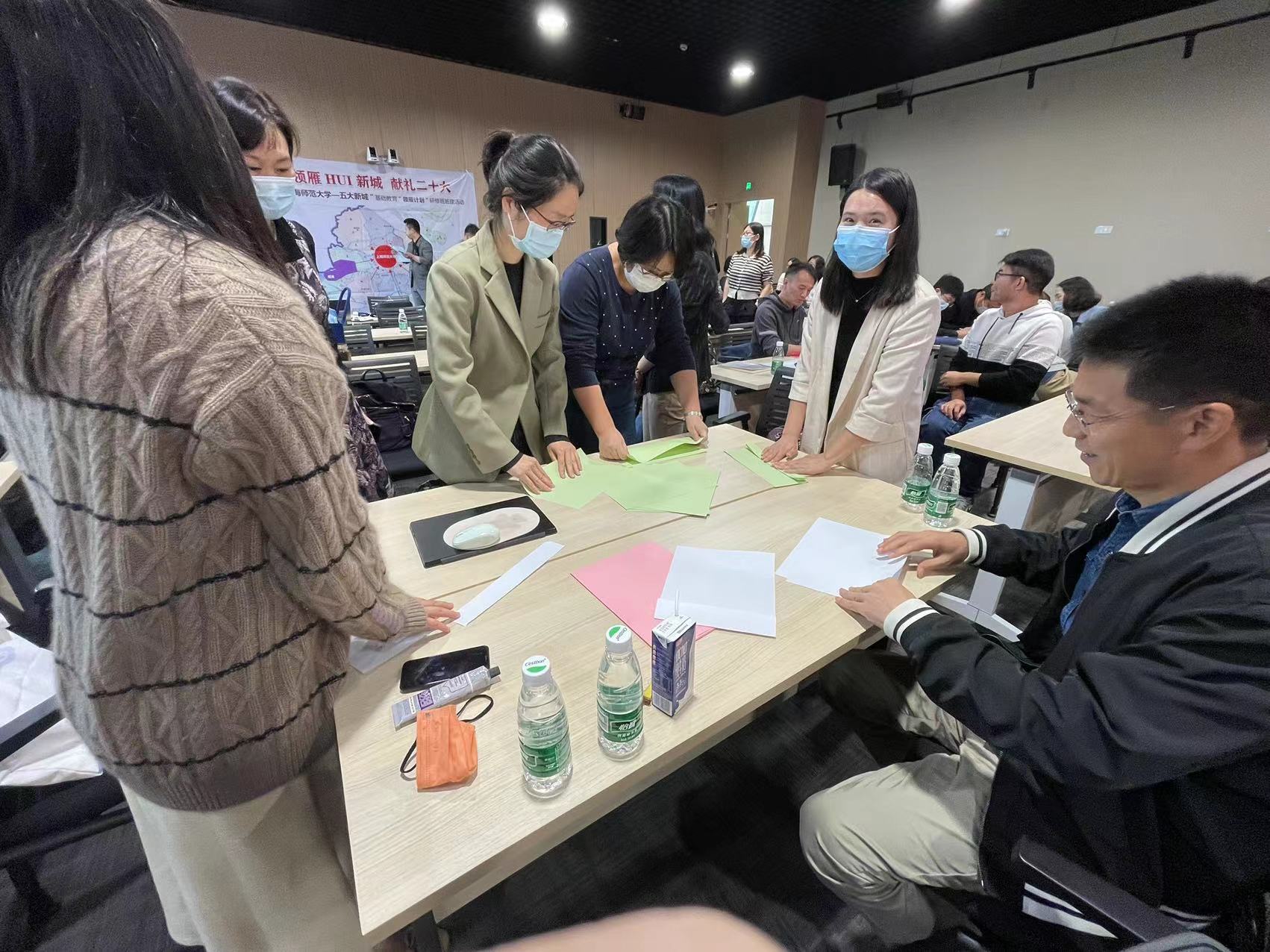 上午讲座结束之后,领雁1班班长季隽、领雁2班班长徐永光,分别设计了班级团建活动。领雁1班“最长的纸链”活动,每个小组成员只能单手操作,需要小组成员通力合作才能完成;领雁2班“五个新城拼图”活动,在游戏中,让五个新城的学员相互认识。活动最终评出了奖项,学员们还进行了才艺表演,因为培训活动正值国庆,互动在“歌唱祖国”的合唱中落下帷幕,学员们共祝中华人民共和国七十三年华诞,一并“献礼二十大”,教育工作者的爱国之情溢满整个会场。