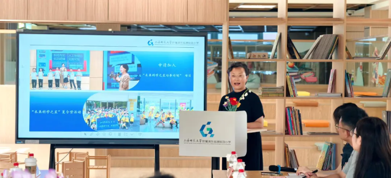 附属浦东临港科创小学校长杨丽莉首先作主题为《科创点亮童心 智慧赋能未来》的开场汇报,她表示,附属浦东临港科创小学自创办以来,始终秉持“科创,点亮心中的光”的办学理念,积极探索“课程+活动+空间”三位一体的育人生态,致力于在每一个孩子心中播下科学的种子。课程上,开发了FCTS思维、Kapla搭建、七巧家长课堂等特色课程;活动上,打造了科技节、高校合作项目等品牌,学生已在多项竞赛中崭露头角;空间上,营造了沉浸式的智慧学习环境,让校园本身成为一座可以自由探索的“七巧趣城”,使科创氛围随处可见、可感、可参与。