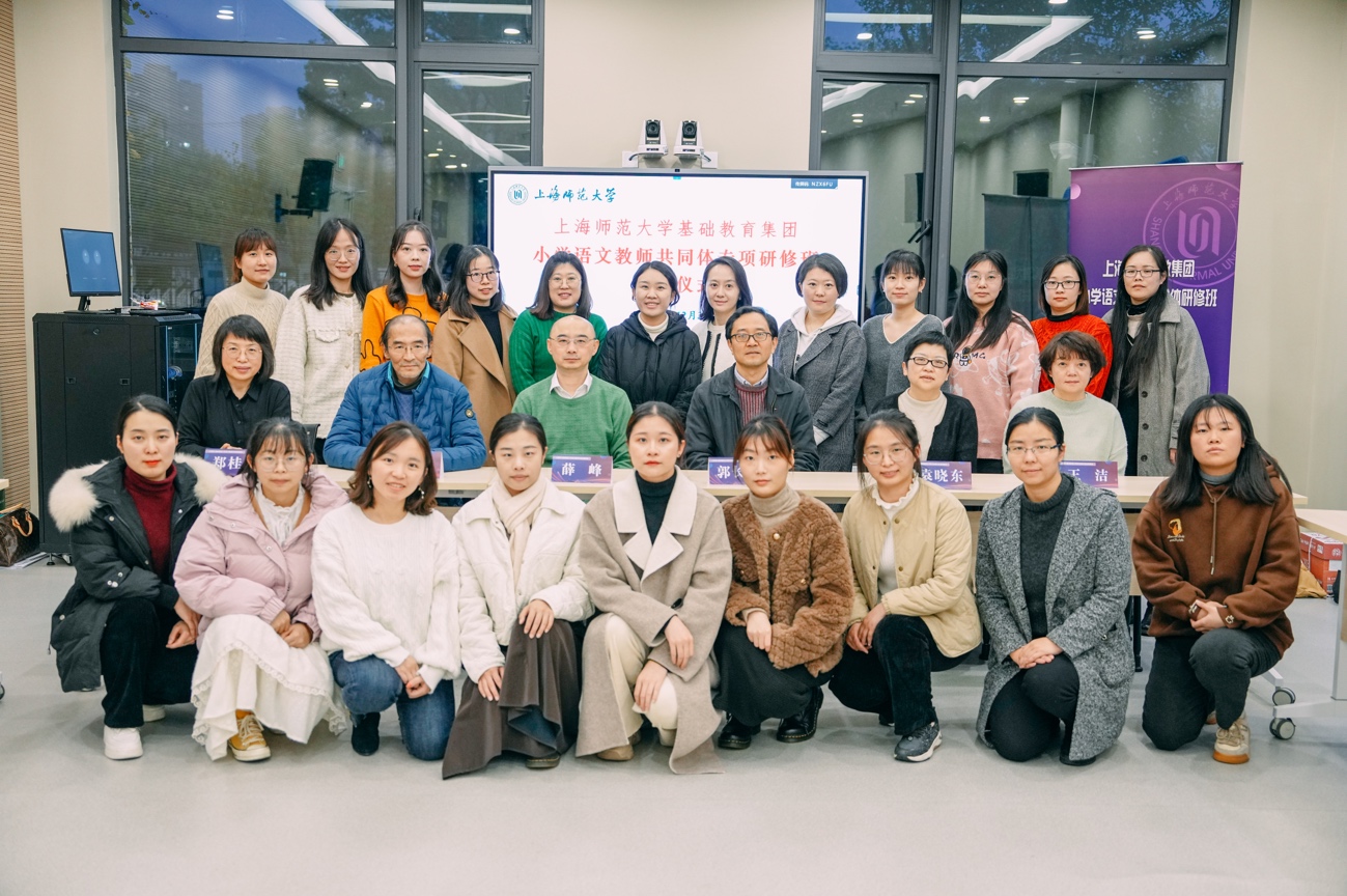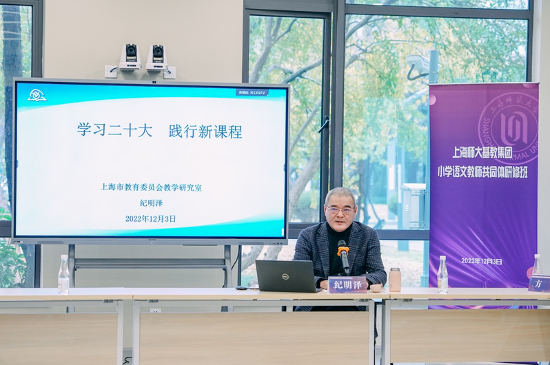 2022年12月3日下午, 基础教育集团小学语文教师共同体专项研修班开班仪式在 国际交流中心举行。开班仪式由 副处长郭长江主持。上海市教师教育学院副院长纪明泽, 教授郑桂华教授、王洁教授,上海市教委教研室小学语文教研员薛峰、陈祳,虹口区教育学院师训部主任袁晓东等专家和来自上师大基础教育集团的26位小学语文教师参加了此次活动。